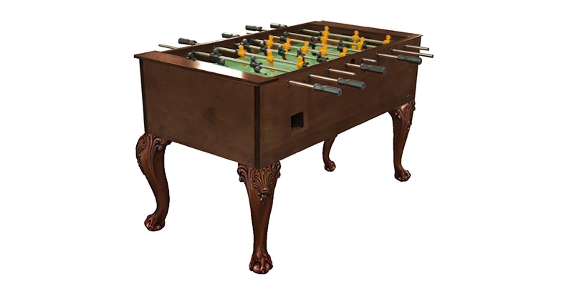 The perfect compliment to your game space is the furniture style foosball table. We can match your pool table or shuffleboard style with different leg options. Features include high pressured laminated playfield, forged steel rods, counter balanced men and one man goalie.