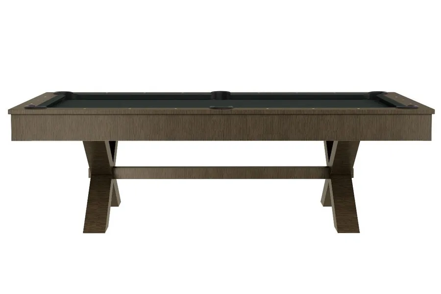 The Crusader Pool Table provides a slightly larger frame for a more imposing look and feel, finished in an elegant Cappuccino tone. It features robust solid wood rails paired with an MDF frame and legs for a stable foundation. This model is engineered for consistent gameplay, offering reliable K-66 gum rubber cushions and a professional 1-inch framed slate.