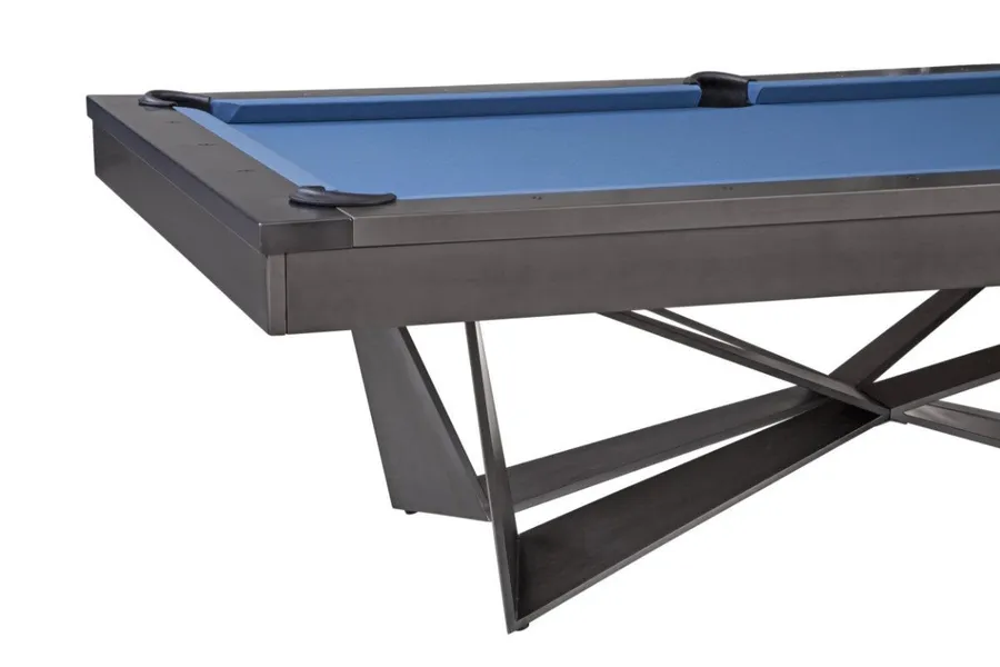 The Plank & Hide Industrial Series Essex Pool Table is a feat of bold modern industrial design- The unique striking design of angled open-air legs gives the illusion of weightlessness. Its sleek steel rails, concealed pockets, and diamond laser-etched sights make for a great game every time.