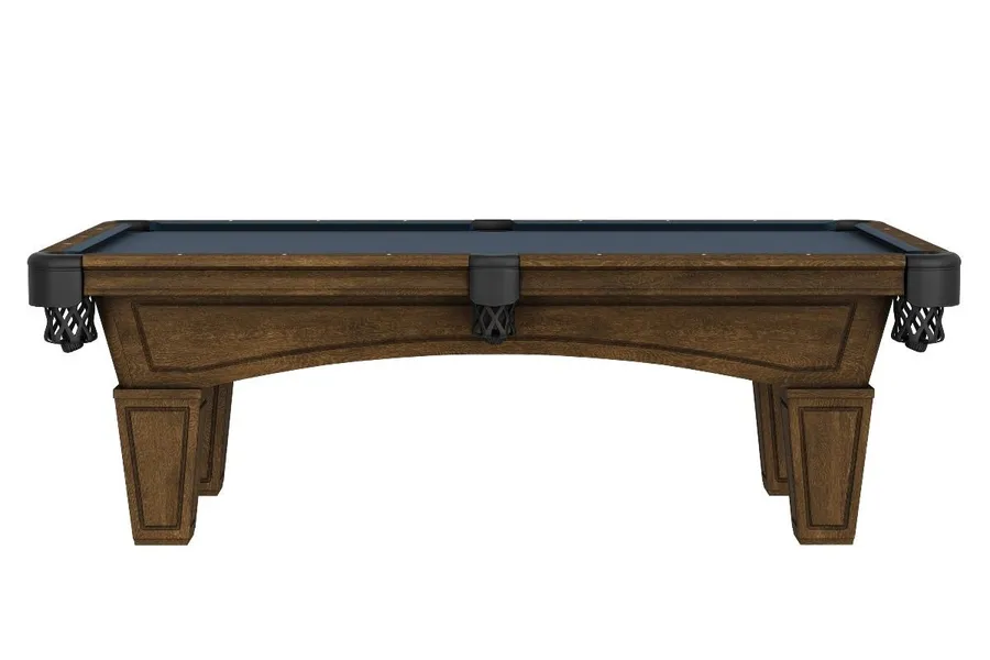 The Hollister Pool Table offers exceptional value for money, combining dependable construction with a clean aesthetic. Finished in a versatile Riverbank color, this table features solid wood rails and a durable MDF frame and legs. It is built with tournament-grade K-66 rubber cushions and a 1-inch framed slate, ensuring impressive performance for any home game room.
