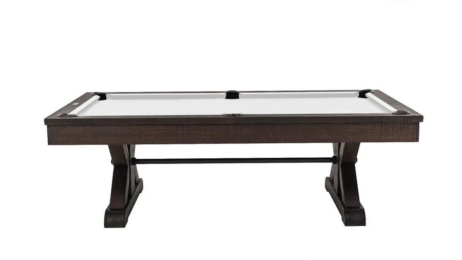 Built from solid Douglas Fir, the Otis Pool Table offers a rugged, rustic look perfect for a lodge or farmhouse aesthetic. It is available in two striking finishes: Smokehouse Fir or Weathered Grey, allowing you to customize its rustic appeal. The sturdy, no-nonsense construction ensures reliable gameplay for years to come.